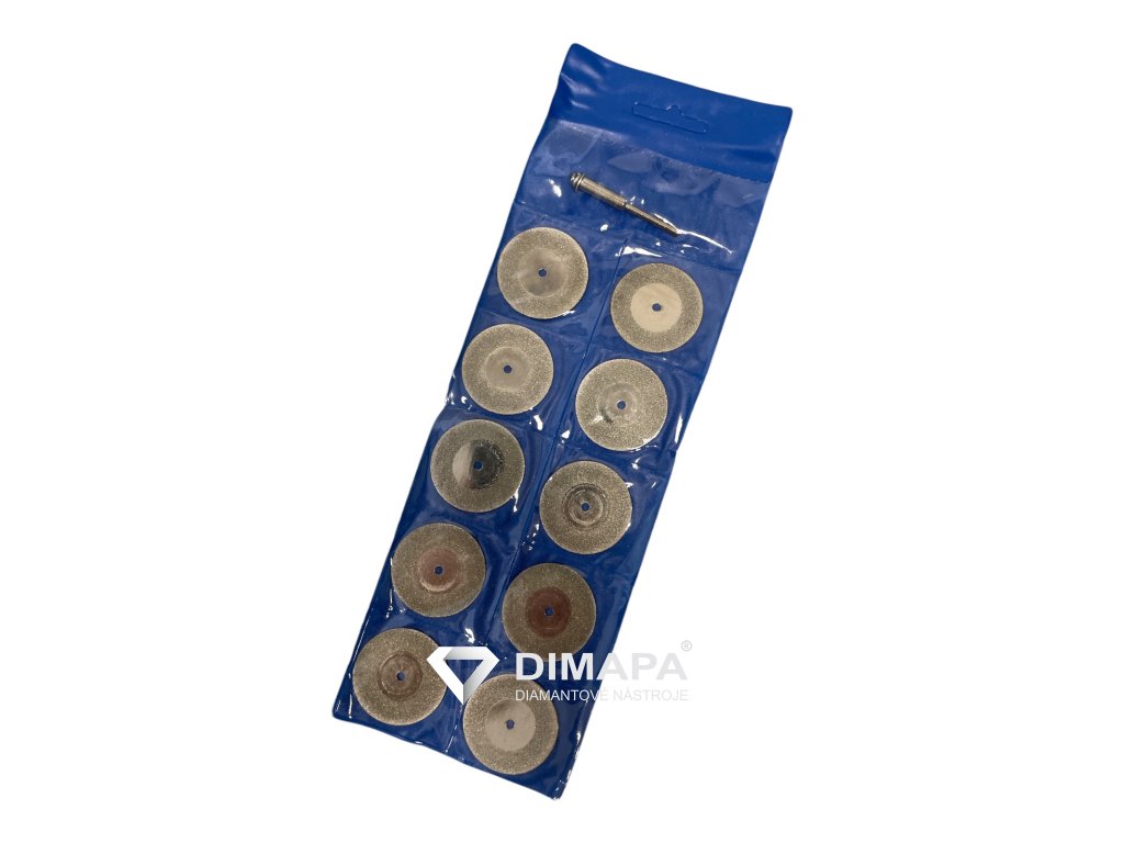 Nově 10 kusů 50mm diamantem potažených řezací kotoučů spolu s jedním upínacím trnem.