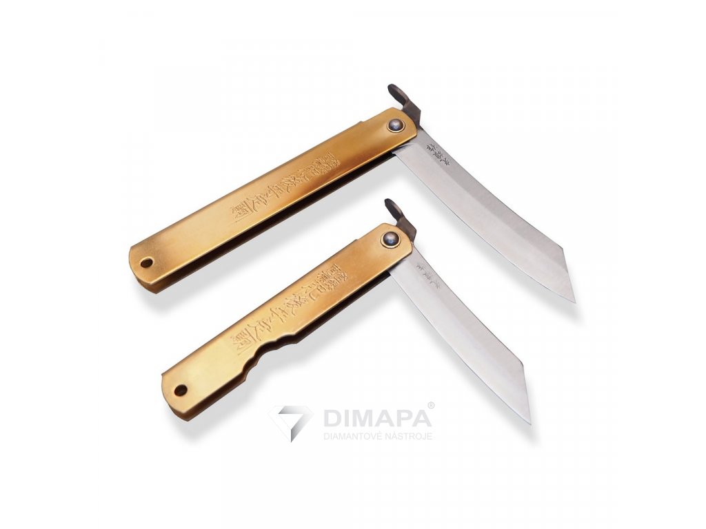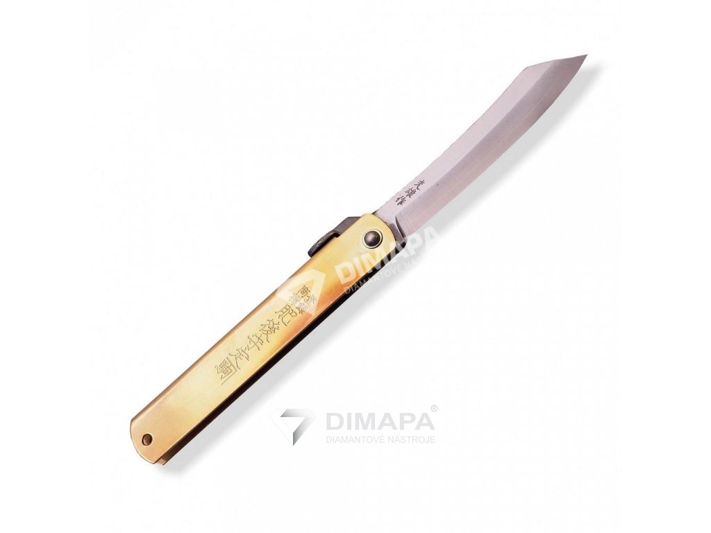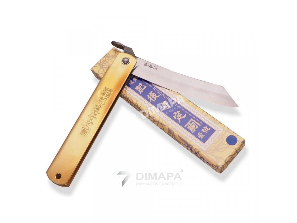 Kapesní nože Higonokami kované Mitsuo Nagao jsou neocenitelné. Nagao-san je pátý v řadě výrobců Higonokami a jako jediný smí své nože nazývat Higonokami. Tento nůž je vyroben z uhlíkové oceli a má tradiční špičku ve stylu kiritsuke.