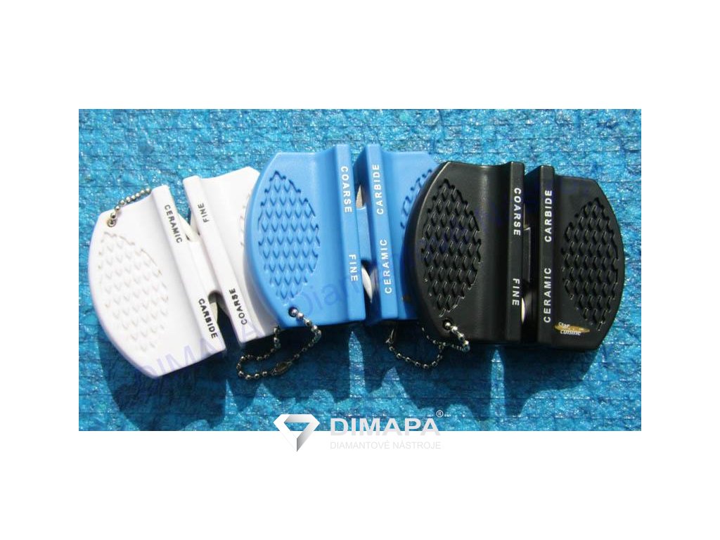 Kuchyňský brousek taidea se čtyřmi komorami na broušení. Tři stupně pro nože ( hrubý, střední a finišovací ). Další komora je pro broušení nůžek.