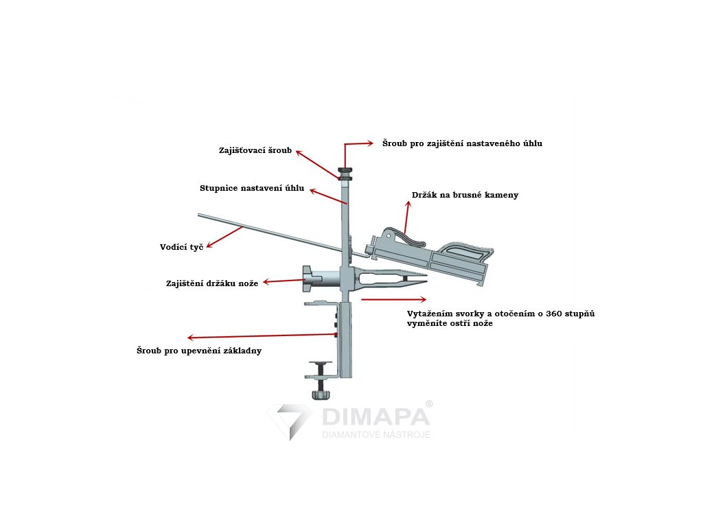 Nastavitelná rukojeť se nachází v horní přední části držáku kamene, mimo čepel, takže můžete nůž rychle a bezpečně nabrousit.