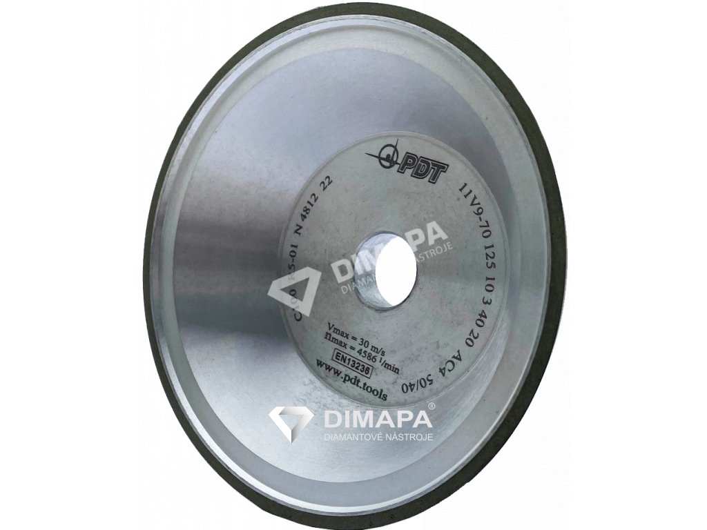 Diamantový brusný kotouč nástrojový 11V9 D125 W10 X3 T40 H20 - PDT