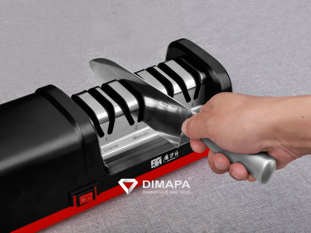 Moderní kuchyňský brusný systém se čtyřmi stupni hrubosti, pro rychlé a jednoduché broušení, které zvládne naprostý začátečník.