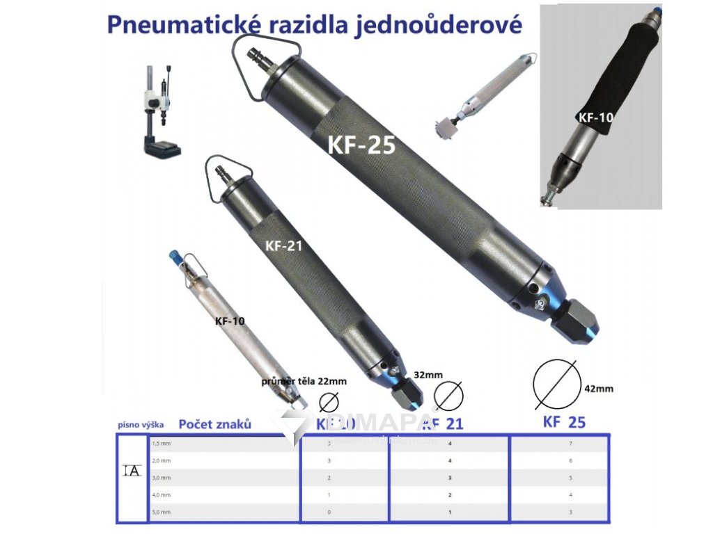 Možnosti značících nástavců : 1 znak 4mm 2 znaky 3mm 3 znaky 2mm Hmotnost úderníku: 0,6 kg