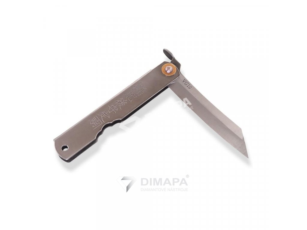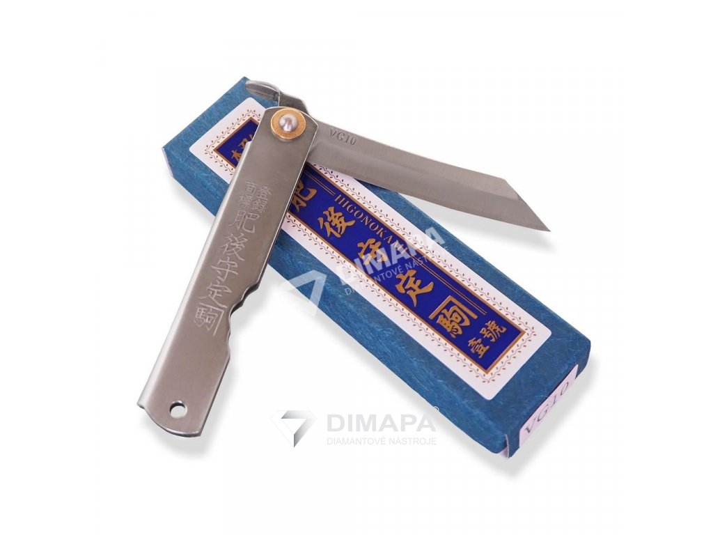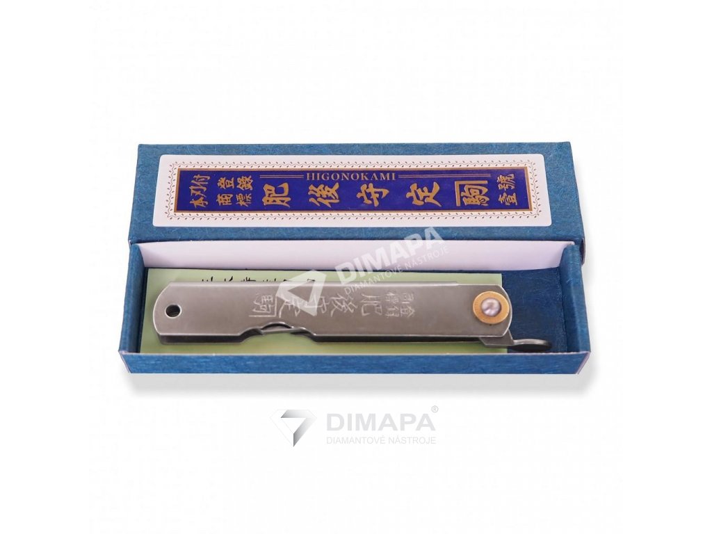 Kapesní nože Higonokami kované Mitsuo Nagao jsou neocenitelné. Nagao-san je pátý v řadě výrobců Higonokami a jako jediný smí své nože nazývat Higonokami. Tento nůž je vyroben z nerezové oceli a má tradiční špičku ve stylu kiritsuke.